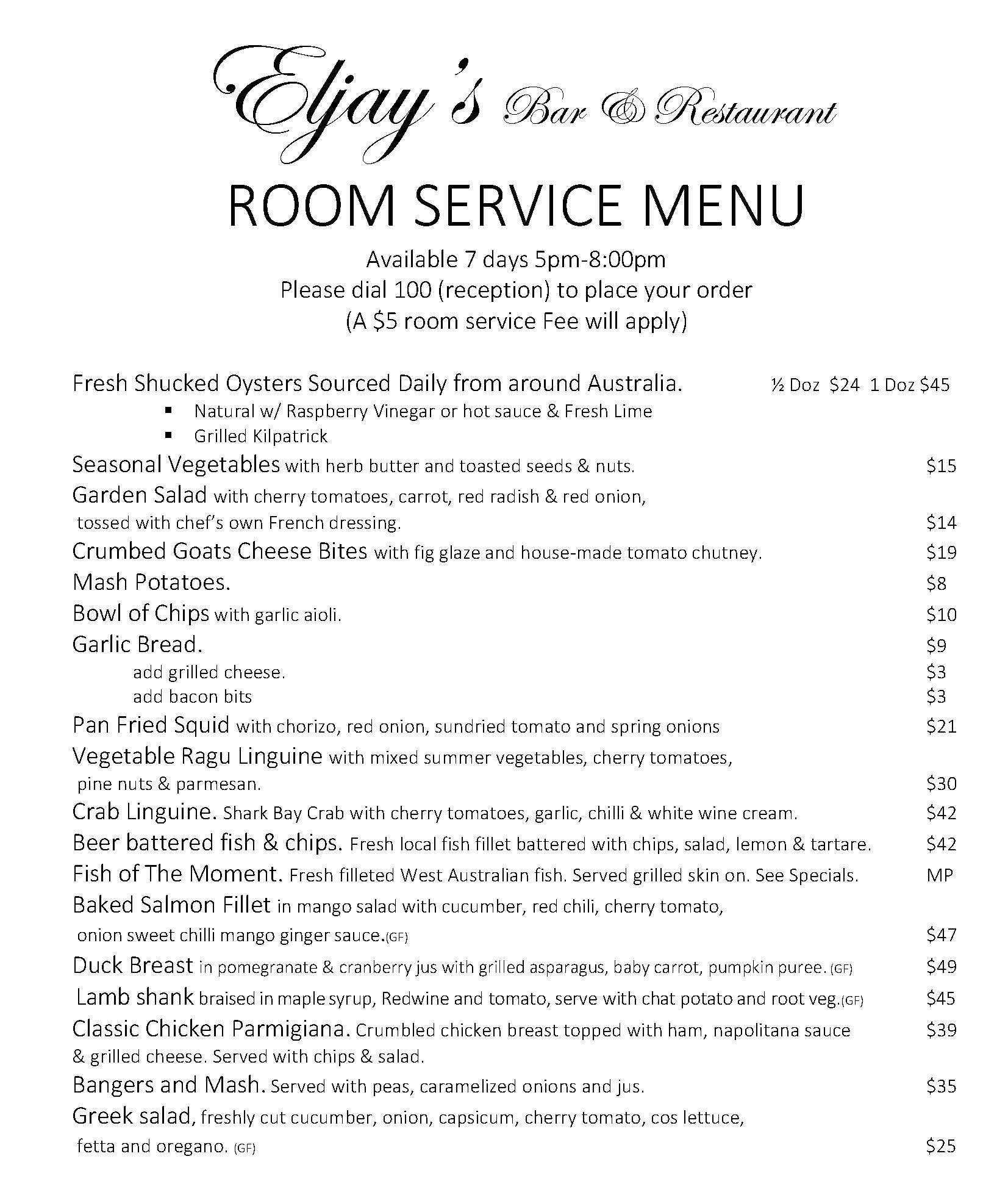 Room Service at Eljays Restaurant